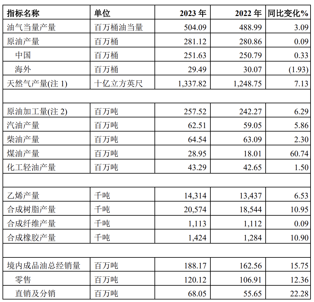 1月26日公布2023年生产经营业绩,2023年油气当量产量504.09百万桶油当量,同比增长3.09%;境内成品油总经销量188.17百万吨,同比增长15.75%。