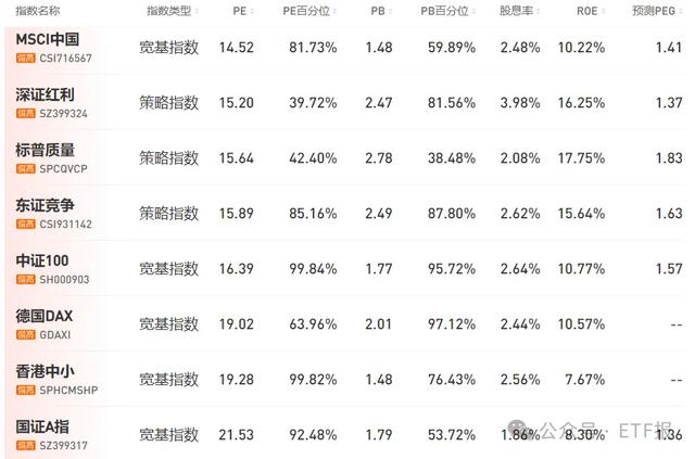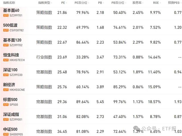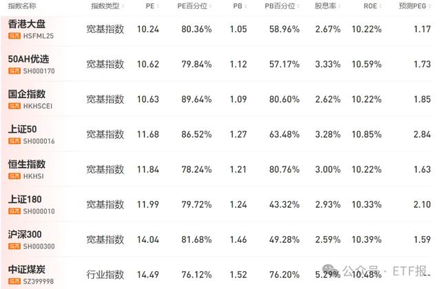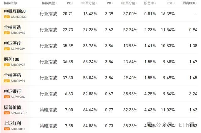 为方便寻找指数机会,特整理常见指数的估值数据,并基于PE及百分位进行3色分类。