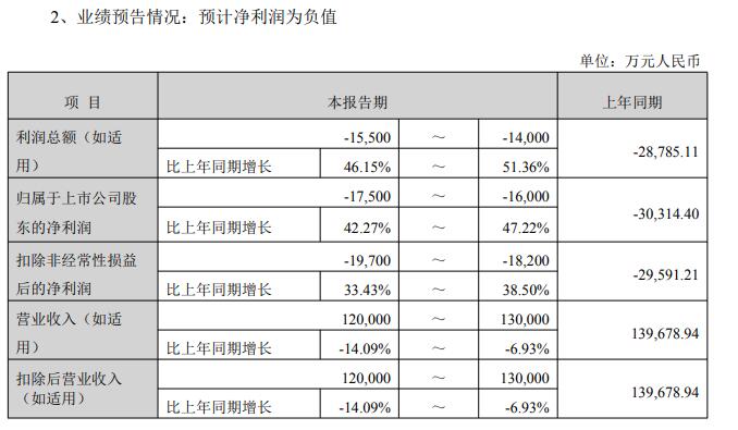 2022年至2024年,公司归属于上市公司股东的净利润分别为-1.89亿元、-3.40亿元、-3.03亿元,归属于上市公司股东的扣除非经常性损益的净利润分别为-2.00亿元、-3.31亿元、-2.96亿元。