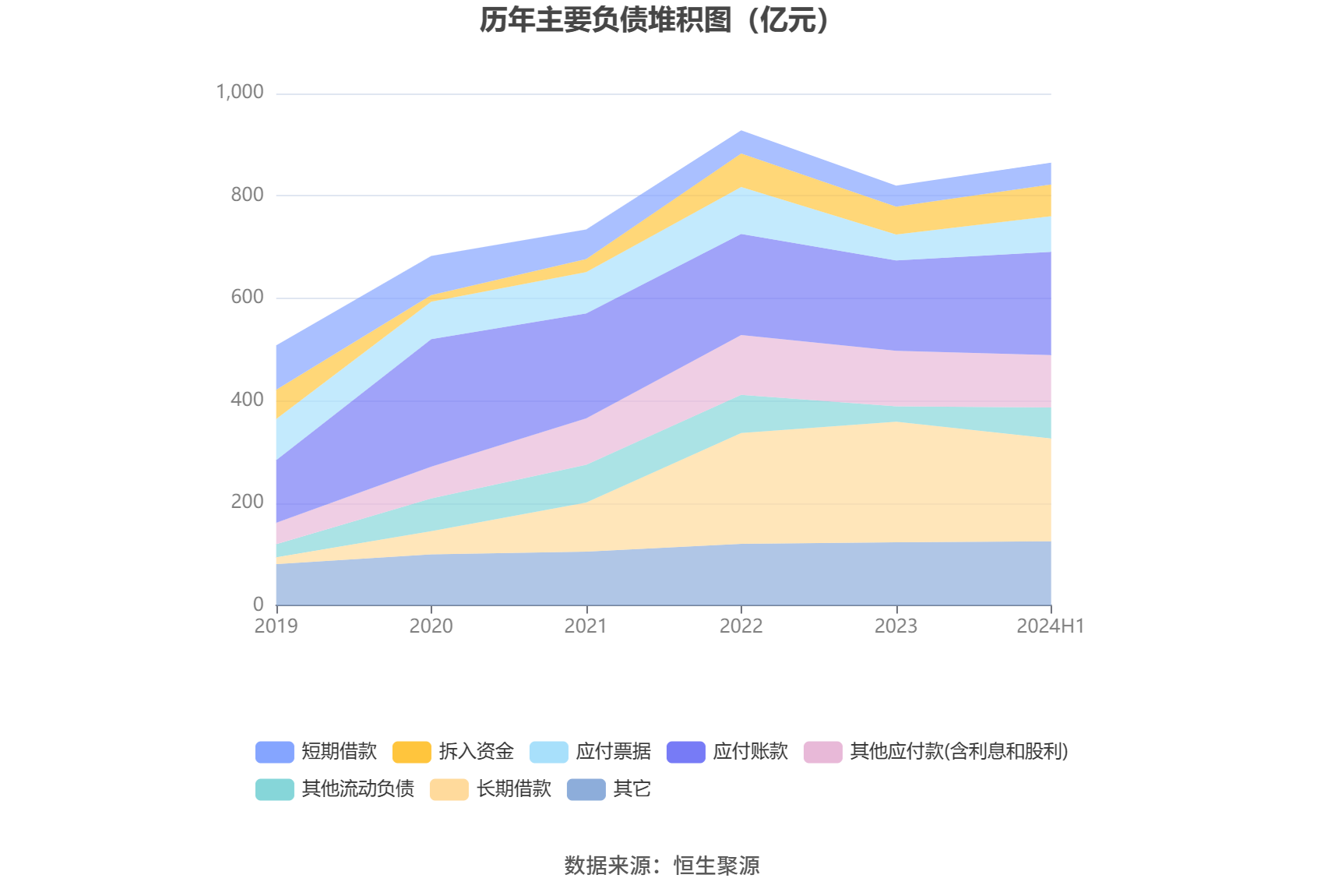 负债重大变化方面,截至2024年上半年末,公司长期借款较上年末减少14.87%,占公司总资产比重下降2.79个百分点;其他流动负债较上年末增加102.84%,占公司总资产比重上升1.89个百分点;应付账款较上年末增加14.43%,占公司总资产比重上升1.20个百分点;应付票据较上年末增加37.35%,占公司总资产比重上升1.08个百分点。