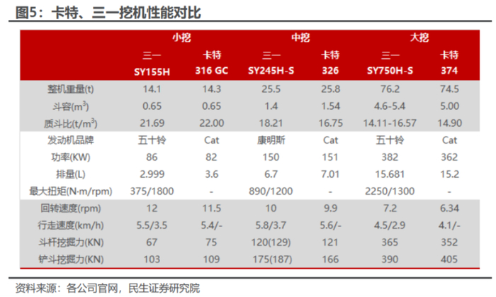 以挖掘机为例,尽管三一重工在部分性能指标上已比肩甚至超越卡特彼勒,但在产品覆盖广度上仍有不足。