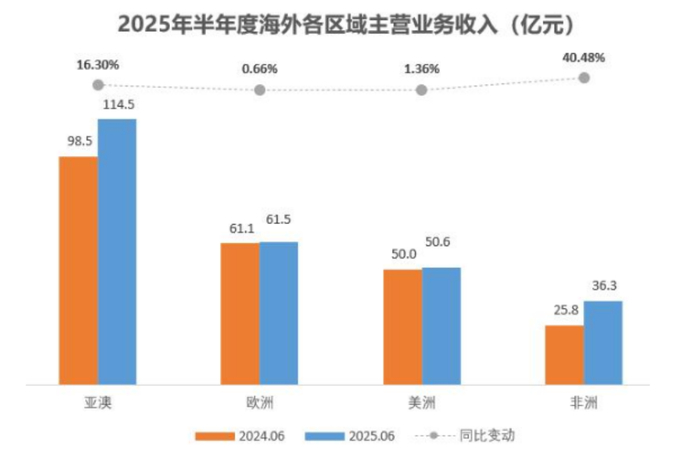 并且,考虑到三一重工的出海主要面向“一带一路”发展中国家,亚澳地区贡献着4成以上的海外收入,非洲则成为海外收入增长最快的地区。
