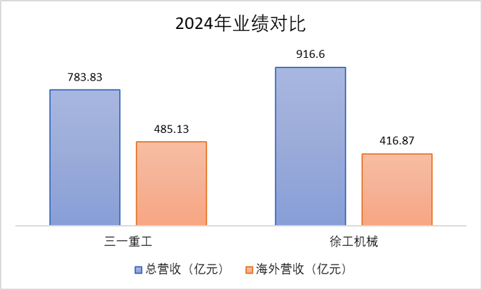 与国内龙头徐工机械(000425.SZ)相比,虽然三一在总营收体量上仍有超百亿的差距,但在海外市场上已实现规模领先。