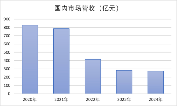 但2021年以来,国内房地产开发放缓有目共睹,下游需求低迷带动工程机械行业深度调整,三一重工的国内营收从2020年的827.2亿元回落至2024年的273.2亿元,跌幅接近70%。