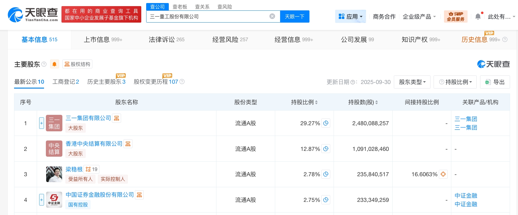 每经AI快讯,天眼查App显示,近日,三一重工(600031)发生工商变更,注册资本由约84.74亿人民币增至约91.95亿元人民币,增幅约8.5%。三一重工股份有限公司成立于1994年11月,法定代表人为向文波,经营范围含生产建筑工程机械、起重机械、停车库、通用设备及机电设备等的销售与维修,提供建筑工程机械租赁服务,经营商品和技术的进出口业务等。股东信息显示,该公司由三一集团有限公司、香港中央结算有限公司、梁稳根等共同持股。