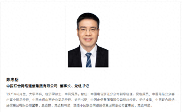 12月3日,中国联通公告,公司第七届董事会第二十七次会议审议通过《关于选举董事长的议案》,选举陈忠岳为公司第七届董事会董事长,任期与本届董事会一致。陈忠岳担任的总裁职务相应辞任。