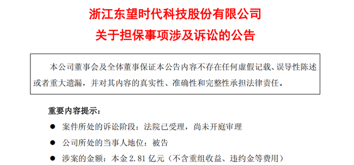 涉案金额2.81亿元,东望时代再陷关联方担保诉讼
