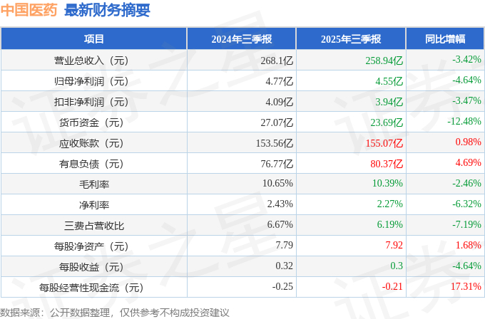 中国医药(600056)2025年三季报简析:净利润同比下降4.64%