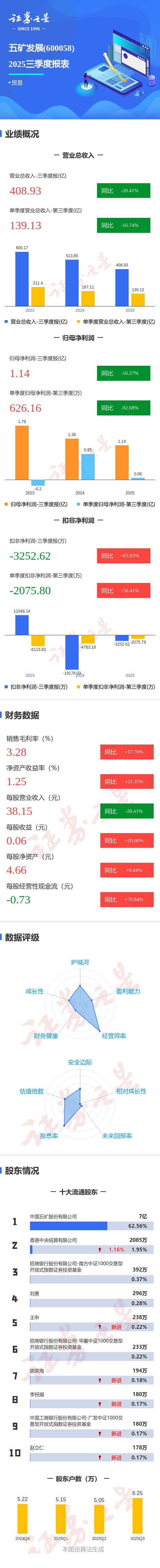 图解五矿发展三季报:第三季度单季净利润同比下降92.68%