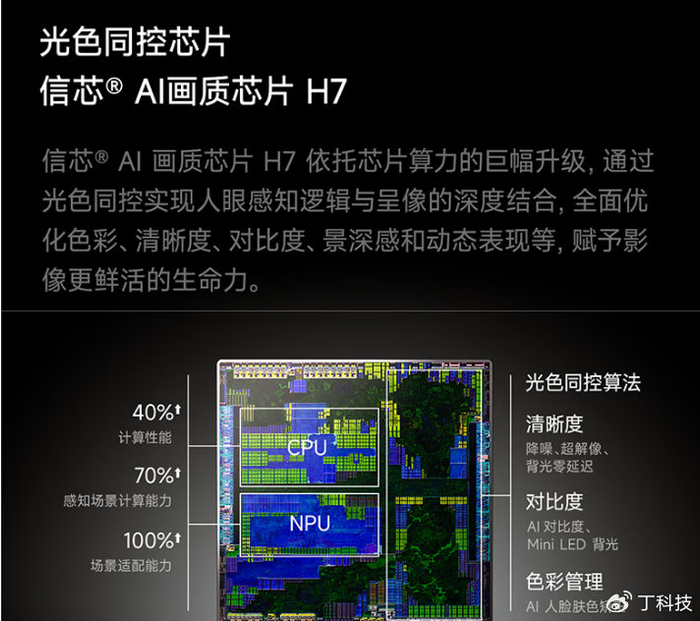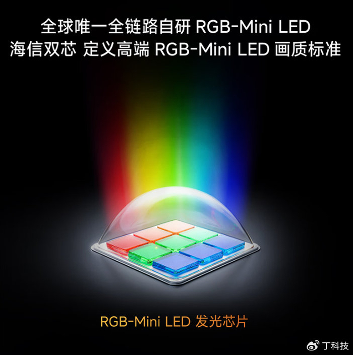 海信的角色不仅是破局者,更是定义者。推动这项技术走向成熟,需要攻克RGB芯片在效率、寿命与成本上的产业化难题,也必须构建与之匹配的运算核心。于是,全球首款RGB光色同控AI画质芯片H7与自研的RGB-Mini LED发光芯片,共同构成了这项技术的双核心驱动。这种从底层芯片开始的垂直整合,构筑了坚实的技术壁垒。
