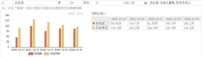 据东方财富网数据,皖维高新总经理孙先武2024年所获薪酬为105.1万元,相较上年薪酬106.3万元微降。