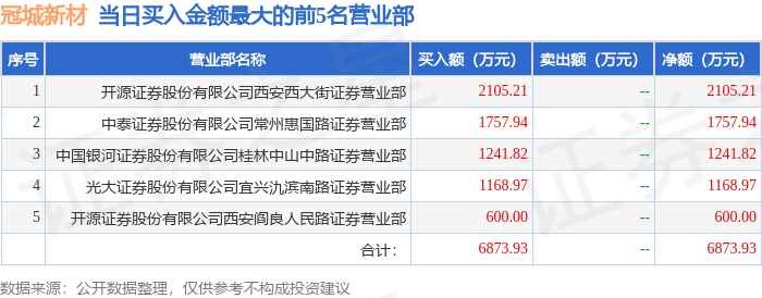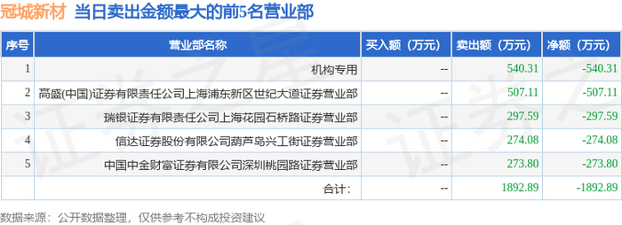 10月14日冠城新材(600067)龙虎榜数据:机构净卖出540.31万元
