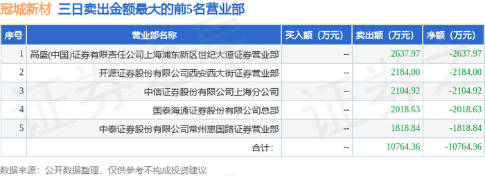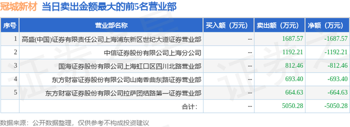 10月16日冠城新材(600067)龙虎榜数据:游资北京中关村上榜