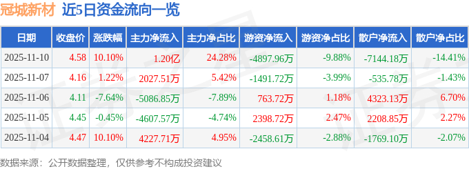 11月10日的资金流向数据方面,主力资金净流入1.2亿元,占总成交额24.28%,游资资金净流出4897.96万元,占总成交额9.88%,散户资金净流出7144.18万元,占总成交额14.41%。