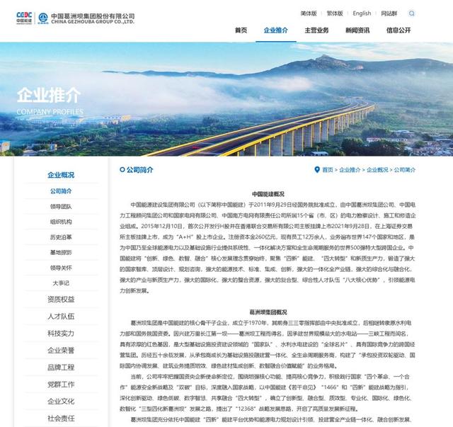 该公司官网介绍,葛洲坝集团是中国能建的核心骨干子企业,成立于1970年,其前身三三零指挥部由中央批准成立,后相继转隶原水利电力部和国务院国资委。因兴建万里长江第一坝——葛洲坝工程而得名,因承建世界规模最大的水电站——三峡工程而闻名,具有浓厚的红色基因,是大型基础设施投资建设领域的“国家队”、水利水电建设的“全球名片”、具有国际竞争力的跨国经营集团。