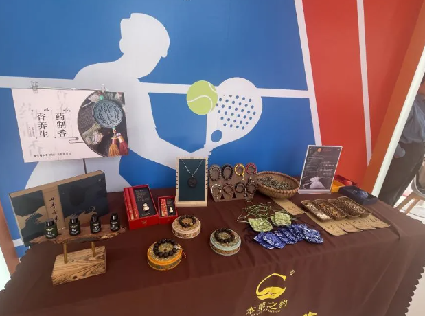在同仁堂主题展台,陈列着同仁堂科技公司出品的“本草之约”系列产品、苏合悦馨冷香、四季合香以及精油等。工作人员介绍,同仁堂科技公司生产的香品均来自天然中草药,这引得网球选手们争相试用。一位来自欧洲的女选手在闻过同仁堂科技公司的“安平香”后感慨道:“这个香气带来的宁静感,让我想起家乡的森林。”