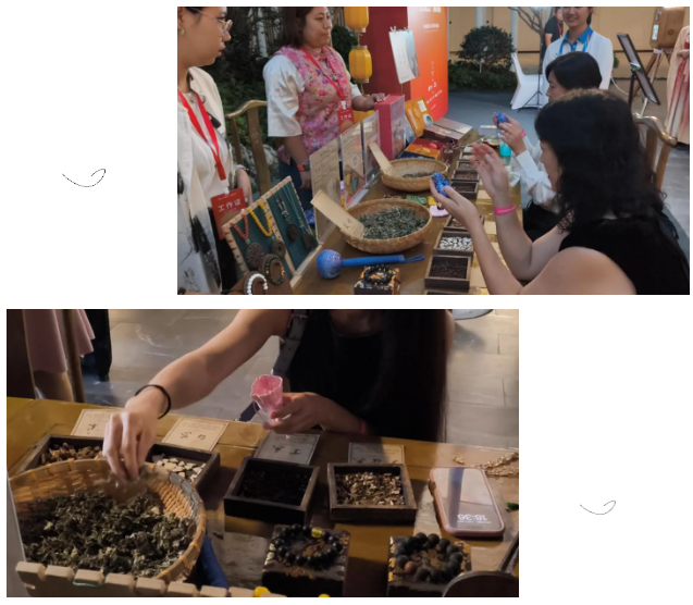 此次赛事,同仁堂展区还迎来了一位特殊的客人——来自罗马尼亚的著名网球选手索拉娜·科斯蒂亚(Sorana Cirstea)在同仁堂“本草之约”复方精油、四季合香产品前流连。她一边听着讲解员介绍中医药文化,一边打量着绣有祥云纹饰的香囊。工作人员介绍道:“同仁堂弘扬中医药文化,传承文化历史,以药制香,以香养生。您可以看这边,这是艾叶,这是广藿香……”