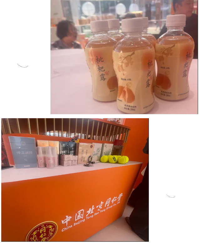 而中网倡导的健康理念与“有健康需求的地方就有同仁堂”的企业愿景高度契合,在展台上,同仁堂科技公司亮出了一系列大健康产品——健康饮品枇杷露;基于本草理念研发的美白润肤面膜、保湿润颜面膜;防脱育发、固发洗发水;维生素e乳等日化用品也在展台上亮相。