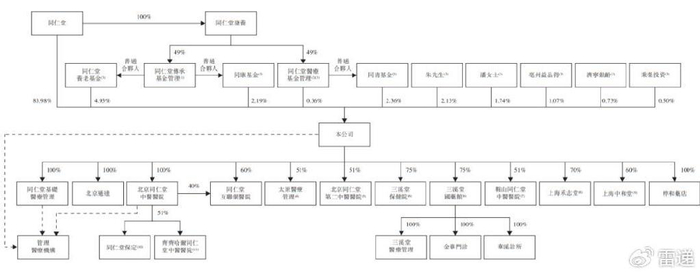 IPO前,同仁堂医养的最终控股股东同仁堂有权直接及间接通过同仁堂康养、同仁堂传承基金管理、同仁堂医疗基金管理、同仁堂养老基金、同康基金及同清基金行使同仁堂医养已发行股本总额约93.83%的投票权。