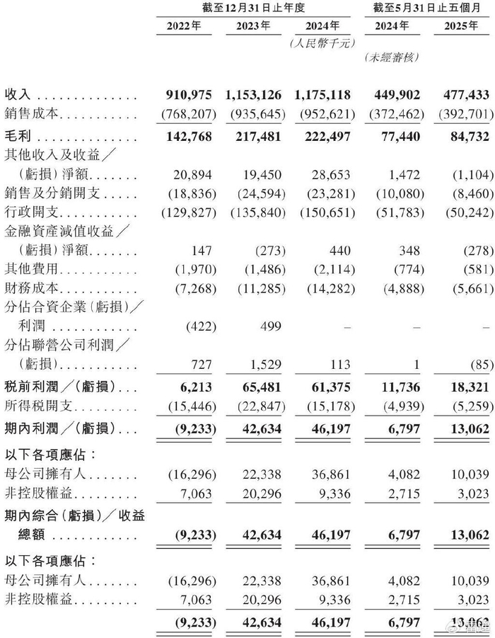 同仁堂医养2025年前5个月营收为4.77亿元,上年同期的营收为4.5亿元;期内利润为1306万元,上年同期的期内利润为680万元。