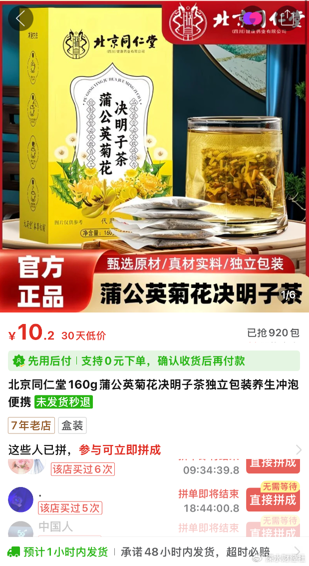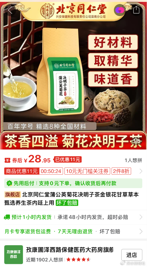 当赵先生在拼多多“华益康商贸”店铺拍下那袋印着“北京同仁堂”标识的蒲公英菊花决明子茶时,他并未想到,他常年喝的“老字号”同仁堂养生茶,竟然跟同仁堂没有关系。