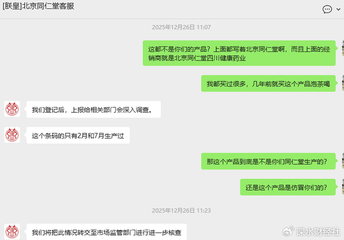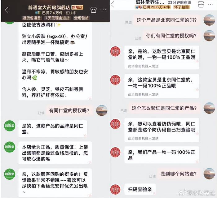 这个解释确实让人难以信服,难道拼多多平台上会公然销售假冒同仁堂产品吗?同仁堂客服表示,他们已经登记下来上报给相关部门深入调查。