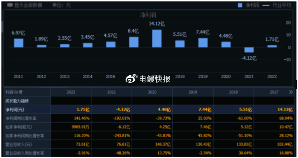 不过,《电鳗财经》注意到,近年,大名城自2017年以后业绩呈现下滑趋势,特别是2022年归母净利润亏损4.12亿元。