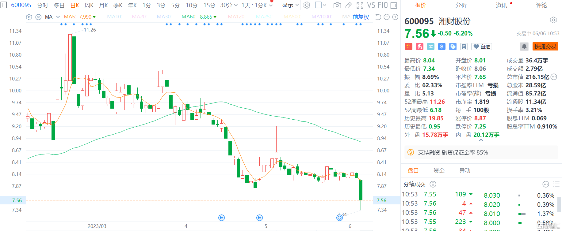 A股异动丨湘财股份跌超6% 17.25亿股限售股即将解禁