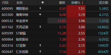 非银金融板块表现活跃 湘财股份涨超7%