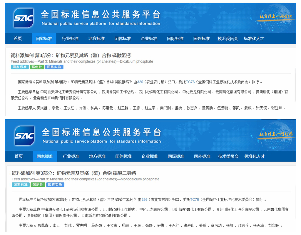 近日,由云天化磷化集团牵头参与修订的《饲料添加剂第3部分:矿物元素及其络(螯)合物磷酸二氢钙》和《饲料添加剂第3部分:矿物元素及其络(螯)合物磷酸氢钙》两项国家强制性标准,在全国标准信息公共服务平台上正式发布,将于2027年1月1日实施,全面替代2017年版本。