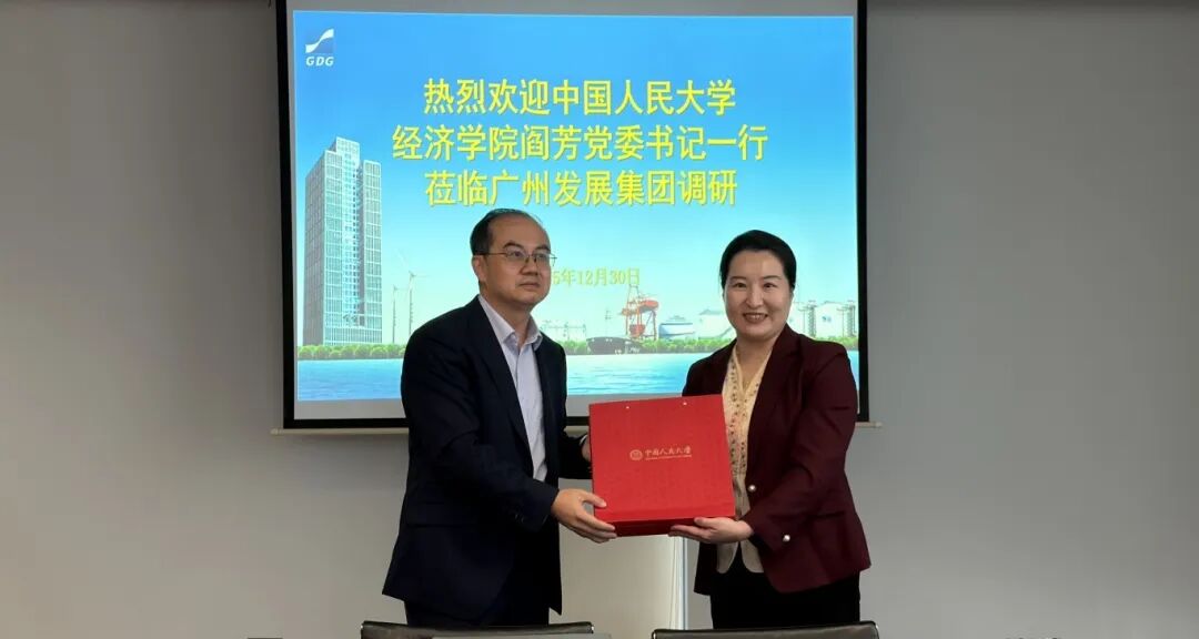 2025年12月30日下午,中国人民大学经济学院阎芳党委书记带队走进广州发展开展调研交流,集团党委副书记、副董事长、总经理吴宏热情接待并出席座谈。
