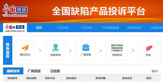 据悉,中国网汽车质量投诉平台日前进行了全新升级,由之前的“中国网汽车质量投诉平台”升级为“中国投诉-全国缺陷产品投诉平台”,平台主要聚焦全国缺陷产品的投诉纠纷处理和缺陷产品线索监测。“中国投诉”由中国网主办,是全国缺陷产品投诉平台,平台致力于为高质量发展、支撑政府监管、保障消费者权益做积极贡献。消费者如遇汽车类问题及消费品问题均可在“中国投诉”(https://315.auto.china.com.cn/)平台进行投诉。