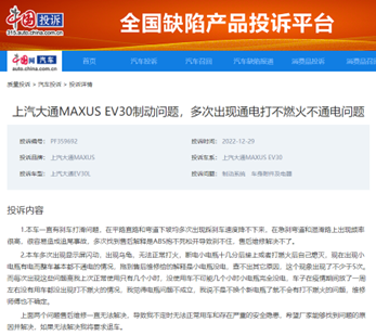记者在中国投诉-全国缺陷产品投诉平台发现,上汽大通MAXUS EV30车型此前曾因制动问题被其他车主投诉,车主王先生当时反馈车辆多次出现踩刹车速度降不下来的情况。上汽大通售后解释是ABS抱不死松开导致刹不住,维修后也没有解决该问题。针对上述投诉,该车型不止一次出现类似问题,记者希望上汽大通厂家可以尽快给车主一个合理解决方案,消除车主对车辆质量问题的疑虑。