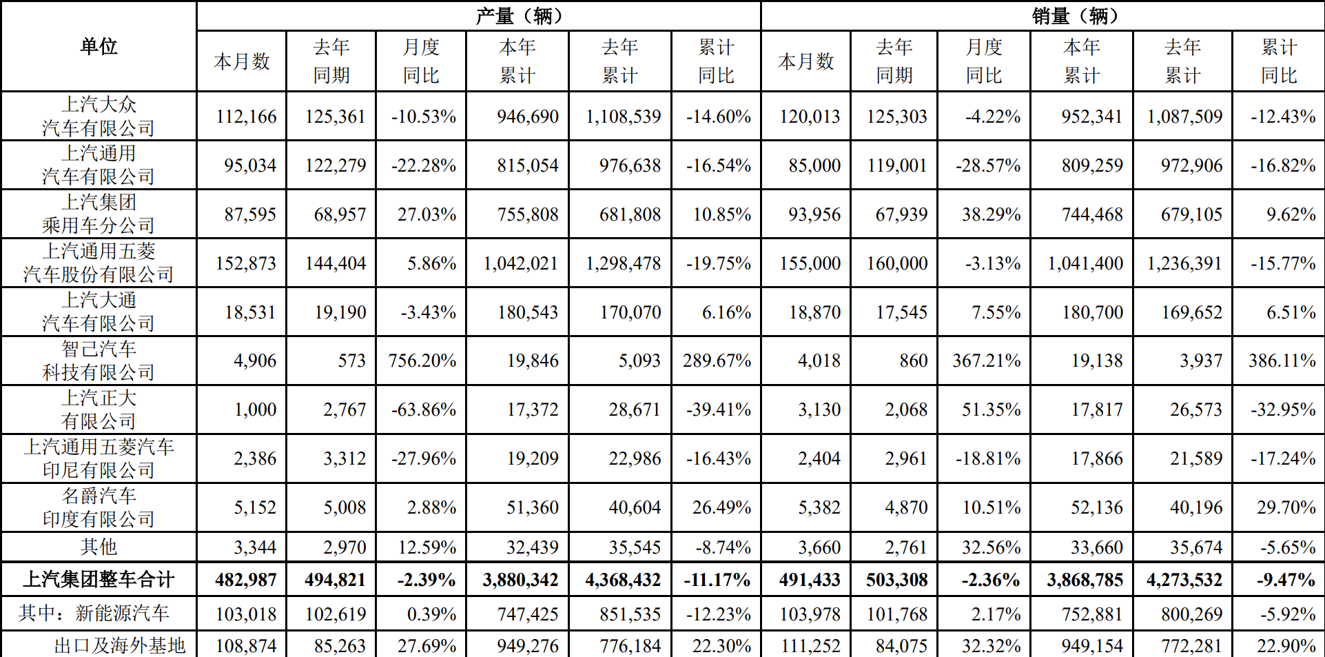 上汽集团:前10月新能源汽车销量合计75.29万辆,同比下滑5.92%