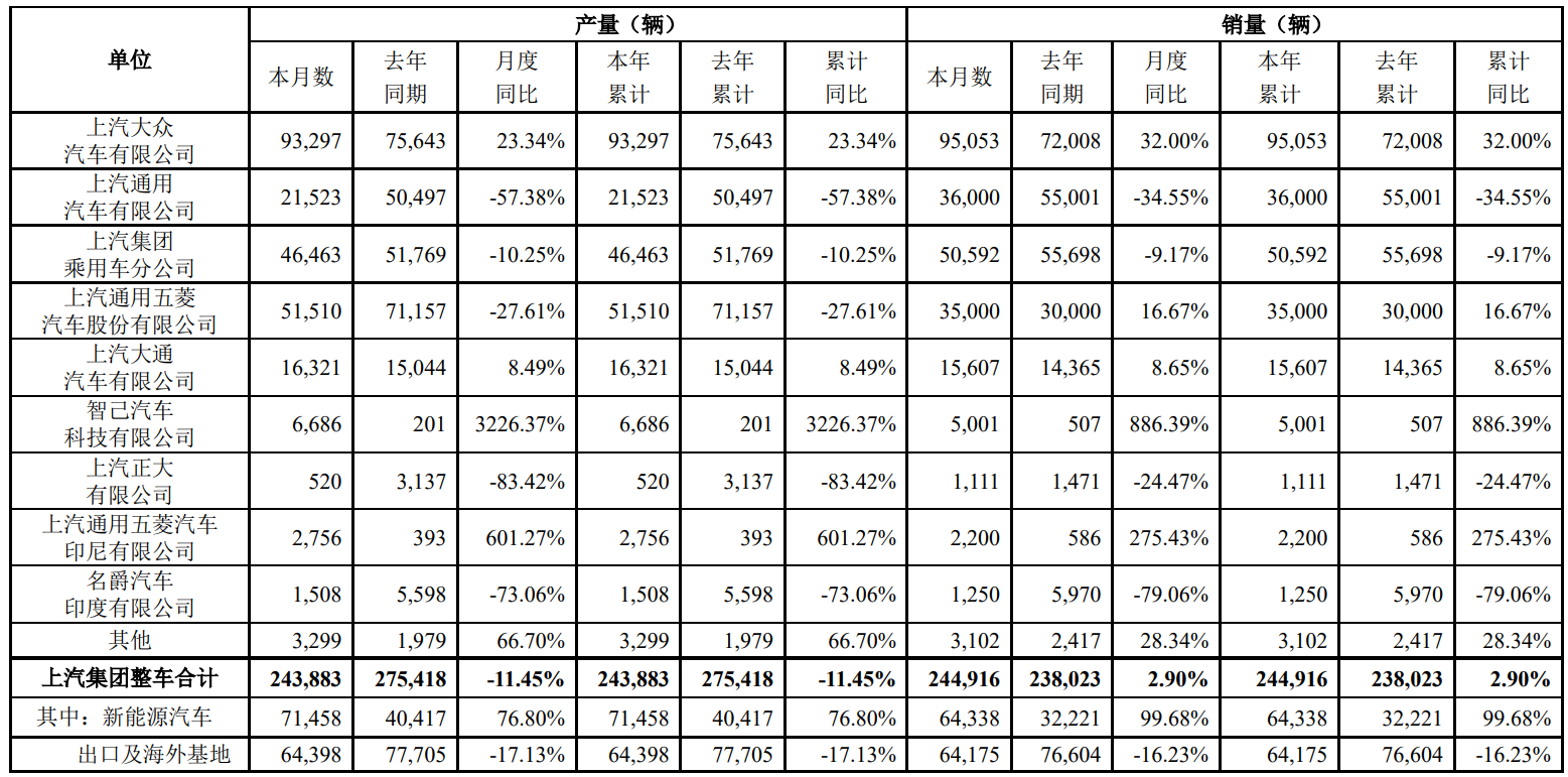 上汽集团:1月整车合计销售24.49万辆,同比增长2.9%