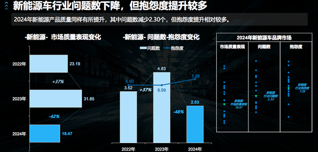 根据《车质网》近期发布的汽车质量报告,今年,新能源车行业问题数虽然下降了,但抱怨度反而提升。