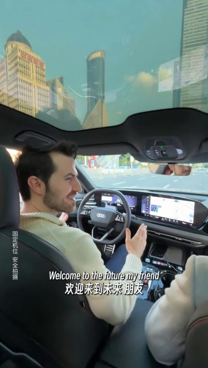 无框车门、溜背造型,颜值在线;EA888发动机+quattro四驱,驾控稳扎。对开惯传统燃油车的老外来说,这种“德系品质+中国智驾”的组合,体验堪称颠覆。