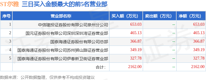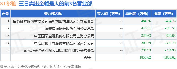 证券之星消息,沪深交易所2025年10月13日公布的交易公开信息显示,ST尔雅(600107)因ST、*ST证券连续三个交易日内收盘价格涨幅偏离值累计达到12%的证券登上龙虎榜。此次是近5个交易日内第1次上榜。