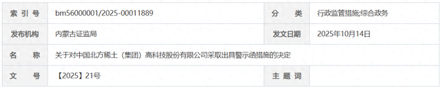 原标题《因关联方非经营性资金占用未披露!北方稀土收到警示函》