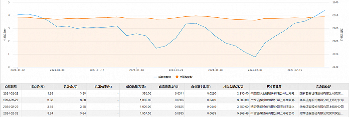 大宗交易成交2580万股,成交额1.0亿元,占当日总成交额的33.38%,成交价3.88元,较市场收盘价3.88元持平。