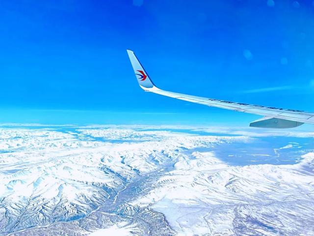 舷窗远眺白云舞,碧空澄澈映眼帘。