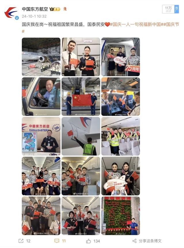 微博共发布45条内容,总流量214.1万。其中,“东航第8架C919交付入列、国庆我在岗、东航物流保障帝王蟹进口、乘东航看武网、东航贵宾室来了位诗人、特殊旅客导听犬”获得了更多的曝光量。
