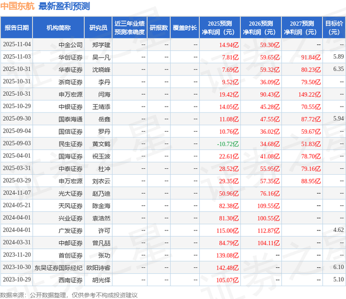 民生证券股份有限公司张骁瀚,黄文鹤,陈佳裕近期对中国东航进行研究并发布了研究报告《2025年三季报点评:25Q3扣非盈利同比大幅增长,改革效益持续体现》,给予中国东航买入评级。