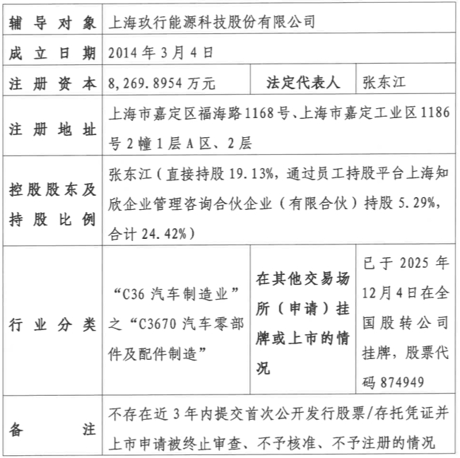 瑞财经严明会近日,上海玖行能源科技股份有限公司(以下简称:玖行能源)在上海证监局完成IPO辅导备案,拟北交所IPO,辅导机构民生证券。