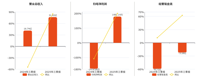 公司营业总收入为31.02亿元,在已披露的同业公司中排名第1,较去年同报告期营业总收入增加14.28亿元,同比较去年同期上涨85.28%。归母净利润为1481.14万元,较去年同报告期归母净利润增加2955.20万元。经营活动现金净流入为-3.28亿元,较去年同报告期经营活动现金净流入增加5.43亿元,实现2年连续上涨。