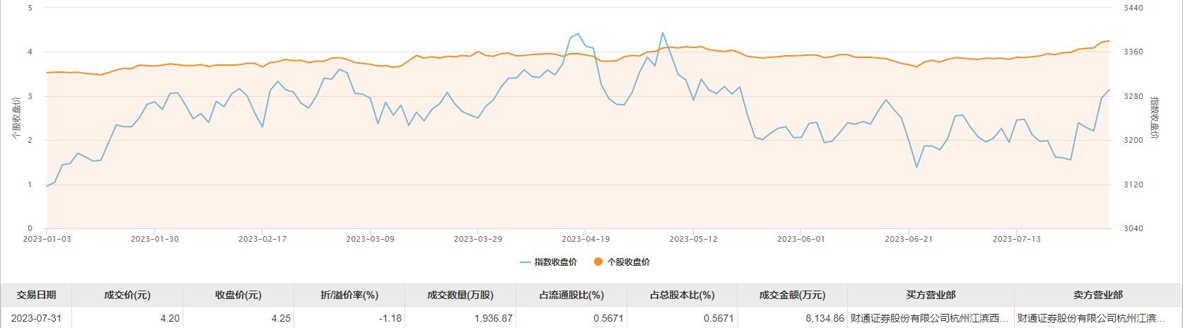 浙江东方今日大宗交易折价成交8134.86万元,折价率1.18%