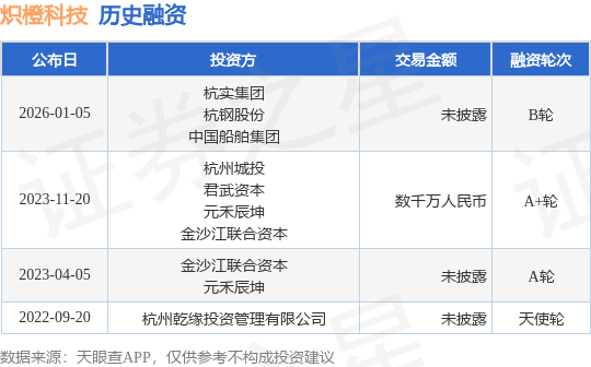 【投融资动态】炽橙科技B轮融资,投资方为杭实集团、杭钢股份等