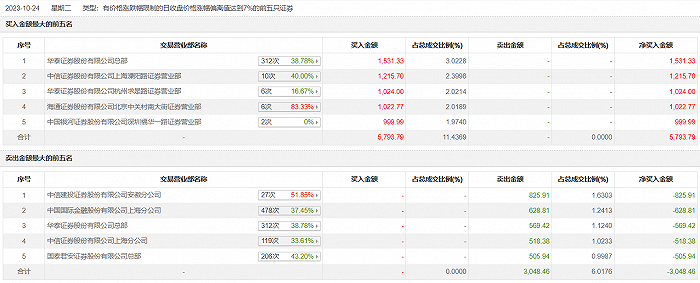具体来看,知名游资现身龙虎榜,华泰证券总部、孙哥(中信证券上海溧阳路证券营业部)分别买入1531.33万元、1215.70万元;中信建投证券安徽分公司、中国国际金融上海分公司分别卖出825.91万元、628.81万元。
