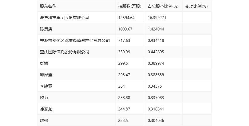 半年报显示,2024年上半年末公司十大流通股东中,新进股东为彭博、李婷亚、陈强,取代了一季度末的陈建有、王吉祥、杜英。在具体持股比例上,陈景庚、邱泽宝、欧力持股有所上升,徐家龙持股有所下降。