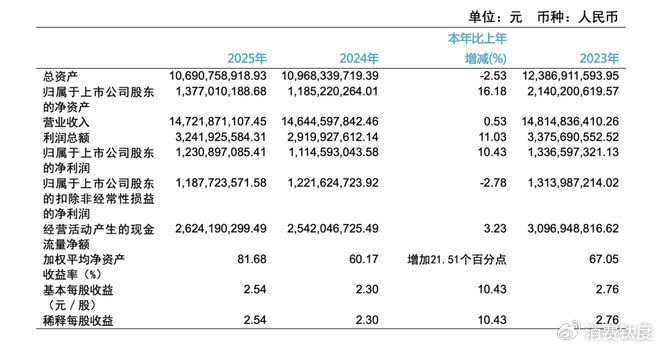 重庆啤酒发布的2025年年度报告显示,公司在过去一年实现销量299.52万千升,同比增长0.68%;实现营业收入147.22亿元,同比增长0.53%;实现归母净利润12.31亿元,同比增长10.43%,净利润的增幅远超营收增幅,重庆啤酒的盈利能力和经营质量正在稳步提升。